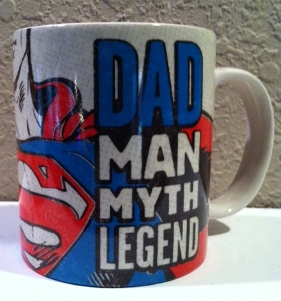 I brought a wrapped present to the table.  Bob opened it and revealed a Superman coffee mug.  With that on display I said, “Kids, I think you’re old enough now to handle our family secret.”  I made them raise their right hands and promise never to divulge this to anyone.  The kids being 9, 6, 5, 4, and 3 (we didn’t make the two-month-old raise her hand) were happy to comply.  I poured it on good, and their wide eyes revealed that they believed every word.  I explained how it only looks like Bumpa is going to play golf or working.  Often times he is out saving people.