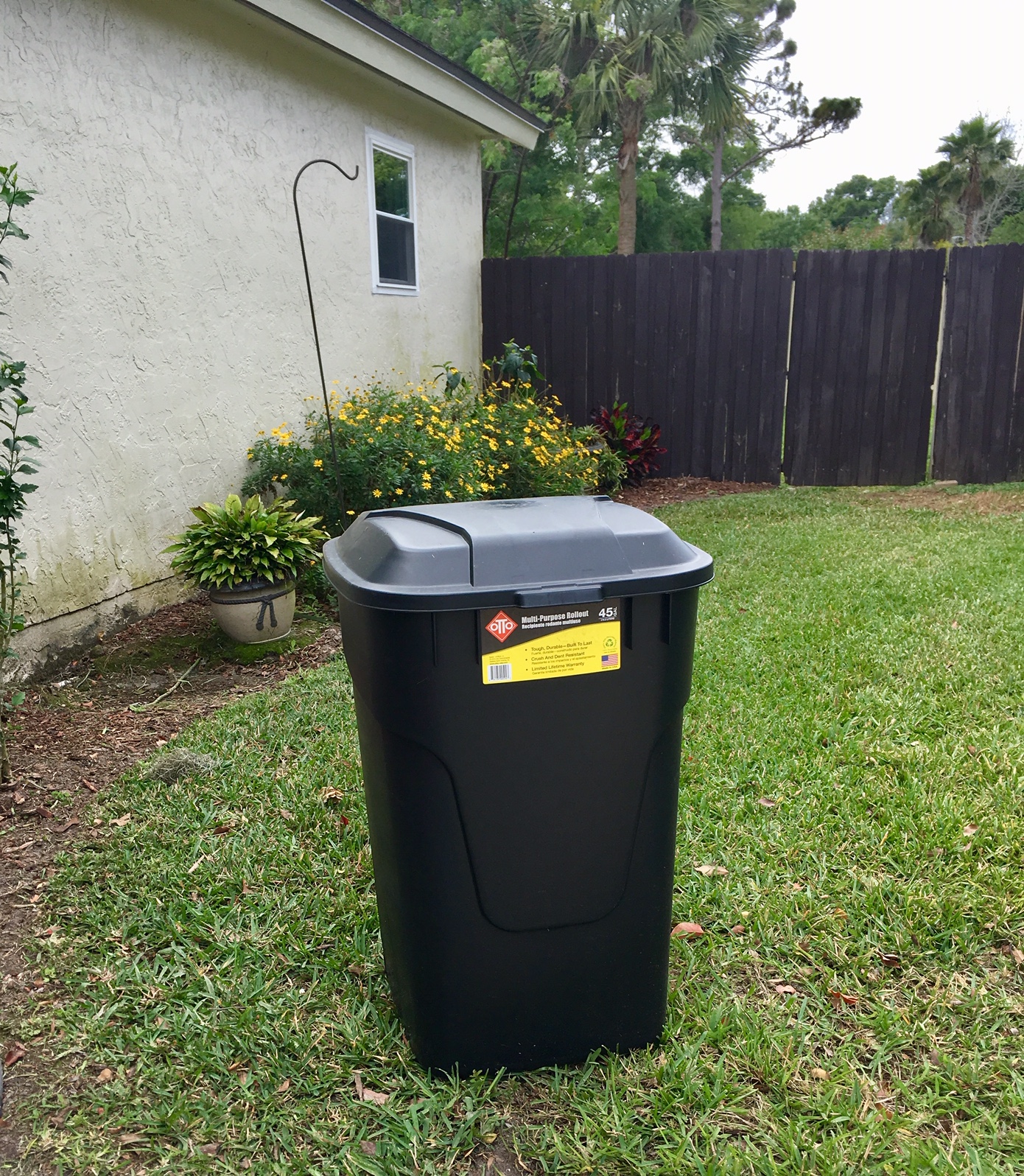 My theory is that some kid stole it and brought it home as a prank. I theorize that he or she also took several others. I can picture their mom asking where did all these garbage cans come from and saying to return them. Alas, it would be impossible to remember where they all came from. Yep, that’s my theory. So now I’m looking for a house with 10 or 20 cans lined up along the side yard and a frustrated mom who answers the door. That is way more entertaining than someone going through our garbage to get “the dirt” on us.