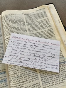 One of my favorite scriptures is Philippians 4:6 – “Do not be anxious about anything, but in everything, by prayer and petition, with thanksgiving, present your requests to God.”