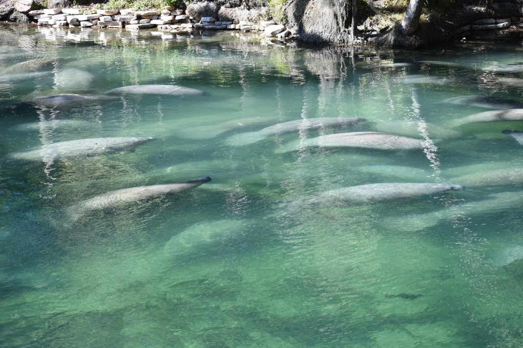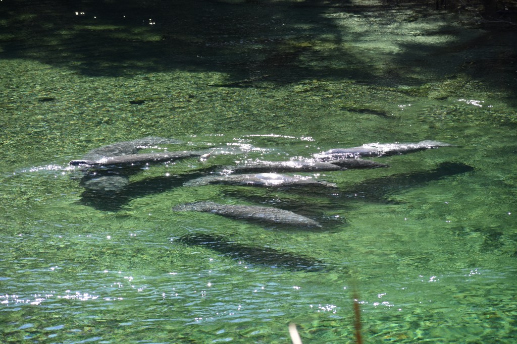 The manatee count that day was a whopping 711, which I believe broke a record. I don’t know how they count the big mammals, also known as sea cows. They are typically slow moving as they graze and frolic along the rivers and springs, so that is helpful; but they can swim up to 20 miles an hour. Still, it would be nearly impossible to get an accurate count in my opinion. But, who cares! There were so many manatees that it looked like you could hopscotch from shore to shore on their backs. But that would be illegal and ill-advised.