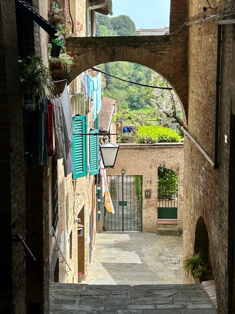 Walking the streets of Siena reveals beauty at every turn. For instance, laundry hanging from windows above the streets in the states seems wrong, but in Italy, it’s artistic. I suppose not so much for the locals, but for us Americans it’s a photo op. I have to admire their commitment to clean clothes even if it does mean airing your laundry for tourists to capture for posterity. As I was taking this picture, a lady walked past me and looked quizzically at me. I assured her that I do not regularly take pictures of laundry, but somehow here, in Siena, it was beautiful. A slice of life, if you will.