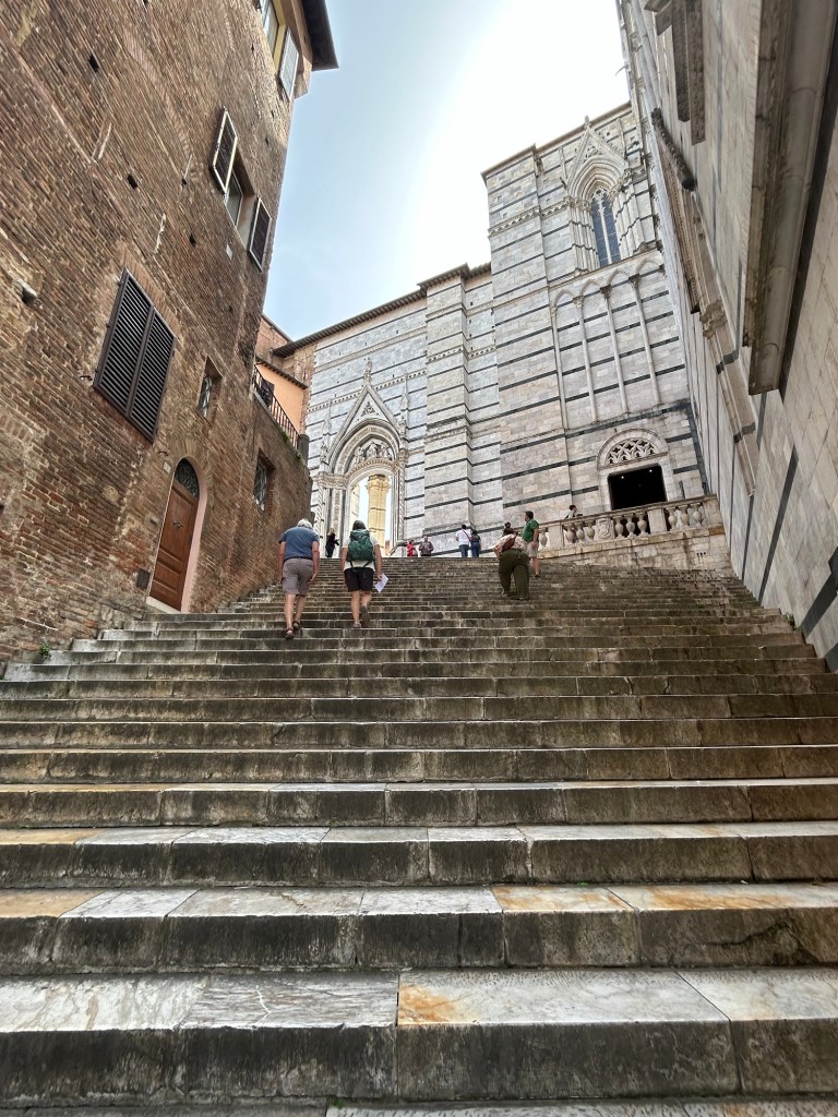 When you think of the hill towns in Tuscany, you may get so caught up in the beauty of them that you don’t stop to think that half of your walking is going to be uphill. And the other half is harder on your knees, but thankfully there is a lot to distract you. The culmination of a trip to Siena occurs when you turn the corner and first behold the duomo (an Italian term for cathedral). It is magnificent, and it beckons you to keep walking up, up, up.