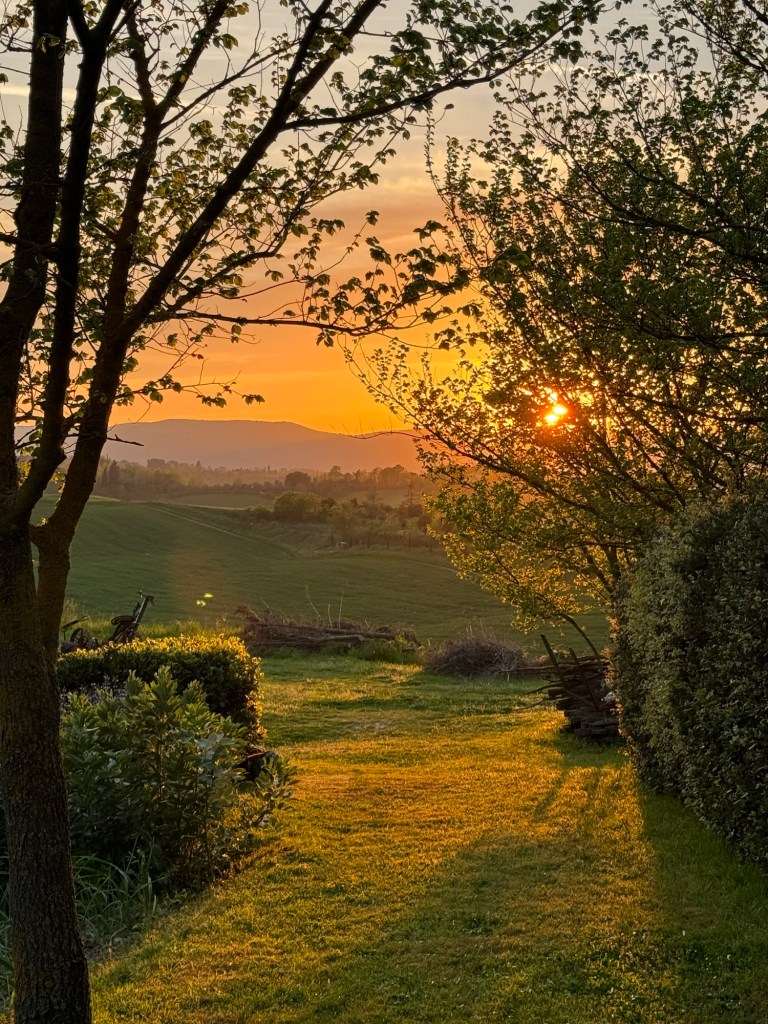 On our second full day in Tuscany, we headed to Montepulciano, which is about an hour’s drive from our Siena VRBO. But first let me share one of the most shocking moments from our trip. Danny, a member of our little gang of travelers, rose early one morning, before anyone else was out of bed, and captured this photo of a gorgeous sunrise.