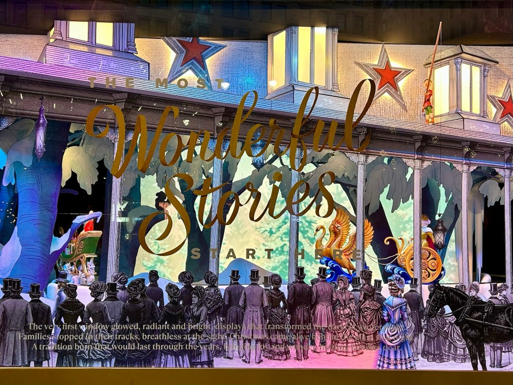 I must share a few of Macy’s windows with you. They wrap around most of the store, so it’s a lovely stroll in winter. We were warmed by the Christmas spirit, our many layers of clothing, and the crowd with whom we shuffled nearly shoulder to shoulder. I am confident my pictures won’t do them justice, but you’ll get the idea. Maybe you’ll want to make your own trip next year.