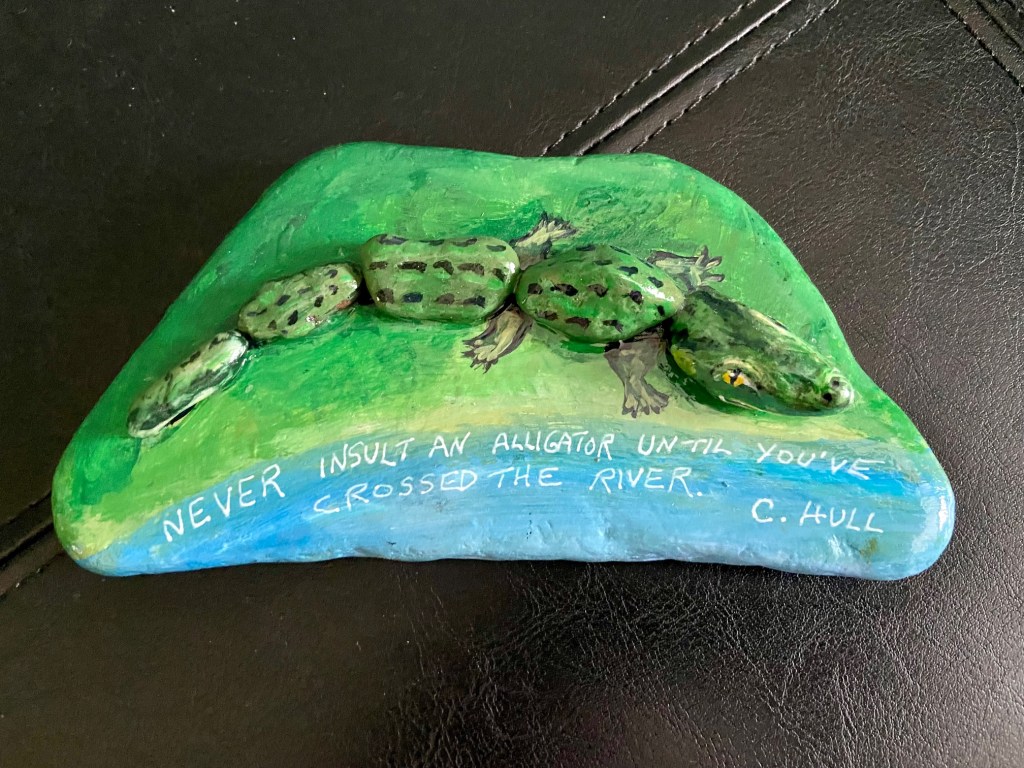 These two are among my favorites which were found by people who were doing the drive with me. The alligator is the rock Liz gave to my sister.