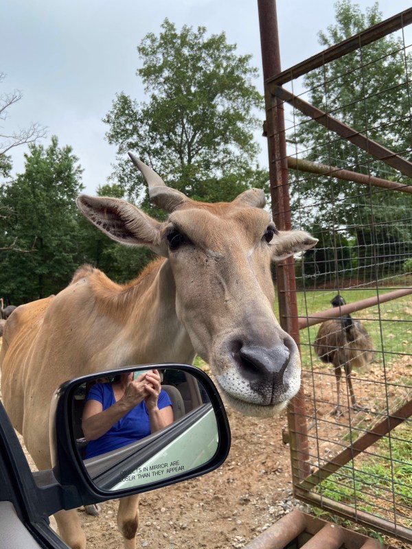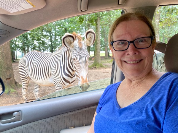 We were told not to feed the zebras. Evidently they like to bite. My window seemed to be going up in slow motion as I wondered if I was going to be additional evidence of why one doesn’t feed the zebras. This is my mildly panicking face. Dena said it went up a notch after she took this picture.