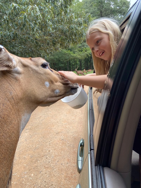 Layna was hesitant at first but she warmed right up to feeding the animals.