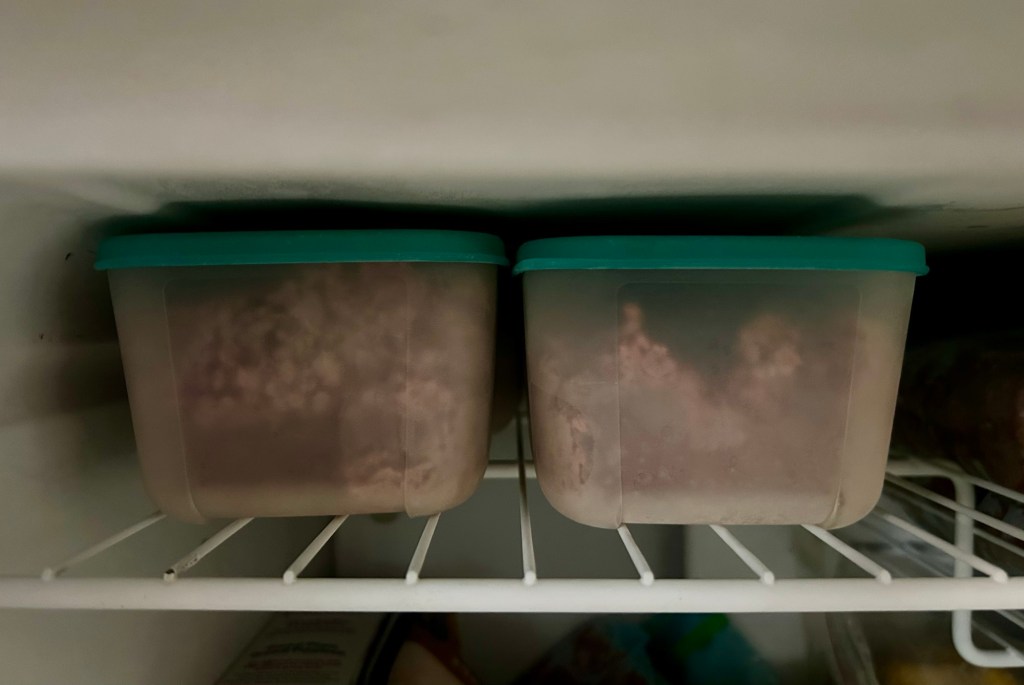 Tupperware freezer mates keep 1:25 lbs. of ground beef frozen. I don’t know what I’d do without these.