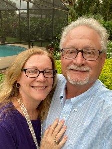 The picture taking was disturbing, too. We decided to get ours done on the way to a dinner date. That way I would have fixed my hair, put on a little make-up and jewelry, and basically not look like I do every other day. Except that day I was suffering from dry eye syndrome and couldn’t wear eye make-up. That’s okay (I thought), I’ll put on some foundation, eyebrows, and lips. I’ll have jewelry on to give me some color and I wear glasses. As for Bob, he took a shower and combed his hair. Life is so much simpler for him!