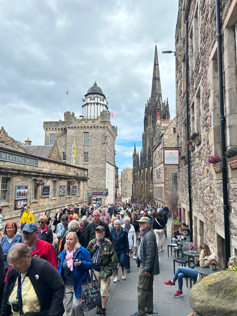 Bob wondering how he will cross the sea of people to get to the other side of the Royal Mile.