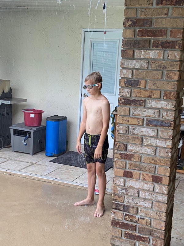 My North Carolina grandchildren popped in for a few days in September. Before they arrived we had had an abundance of rain and the pool water was spilling over the edge. They fixed that for us in a matter of moments without us having to do a thing. I love to watch them and my local grandkids (their cousins) playing together. No one is safe from getting wet when they’re around.
