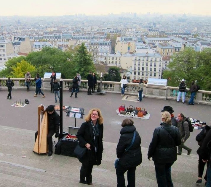 On my recent trip to Paris I had the opportunity to challenge a woman’s personal space. We were at Montmartre, the artsy area on the highest hill that overlooks Paris. Aubyron and I stood in front of Sacre-Coeur (Basilica of the Sacred Heart of Paris) taking in the view of the city and enjoying the music of a harpist who performed on the steps there. It was the kind of moment that you couldn’t adequately capture with your camera but we were compelled to try anyway. I walked around the top of the stairs shooting pictures from every angle and then came back to Aubyron who was trying to photograph the harpist. She had been attempting to get that picture for five minutes but was hampered by a woman who had put down roots on the step about four feet from the musician and directly in line between him and Aubyron. She seemed to be in her own world and content to stay in that place for the rest of the day. Aubyron was about ready to move on, sadly giving up her picture when I jumped in and said I’d take care of the situation. I left Aubyron with a puzzled look on her face, walked down the steps and stood next to the woman. Now when I say next to the woman, I mean very, very close to her. She looked at me with confusion and I smiled as I planted myself in her personal space all the while feeling a strange mix of being very American and very European.